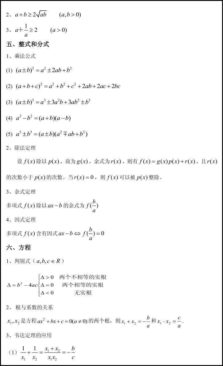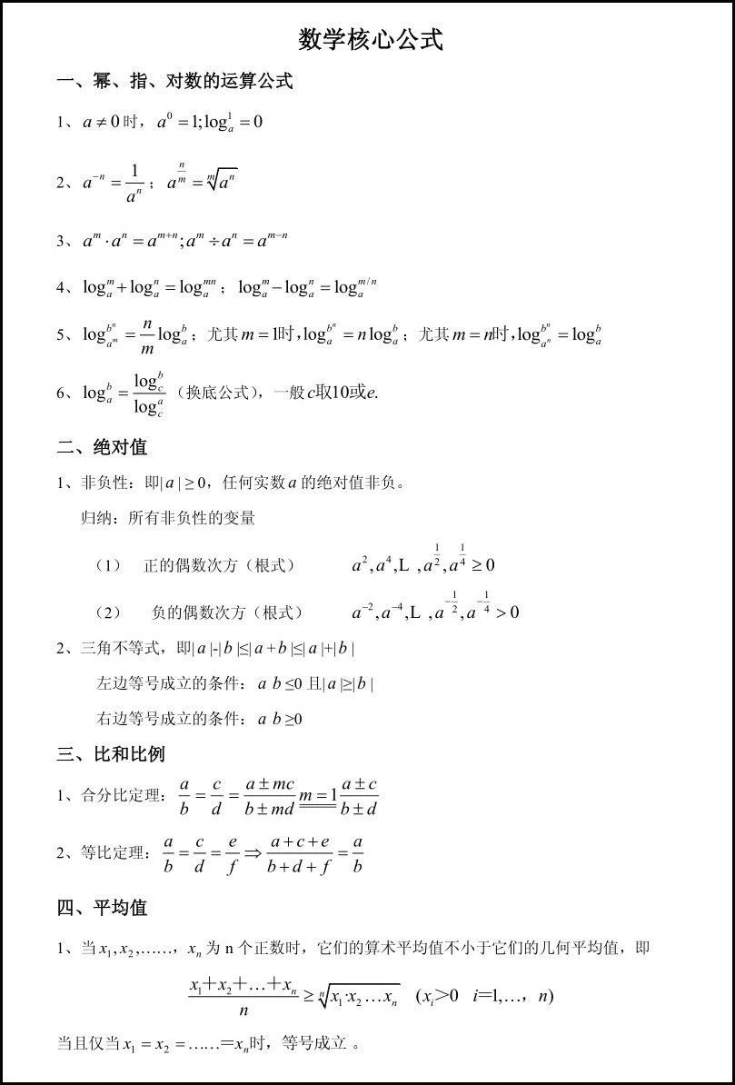 ④ 数列基本公式,等差(比)数列性质和公式。