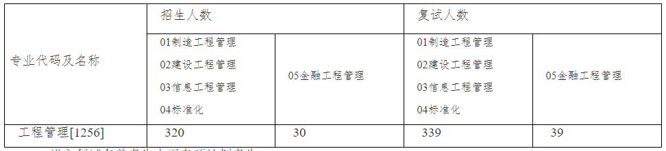 清华大学2020级工程管理硕士(MEM,招生代码125601)复试分数线