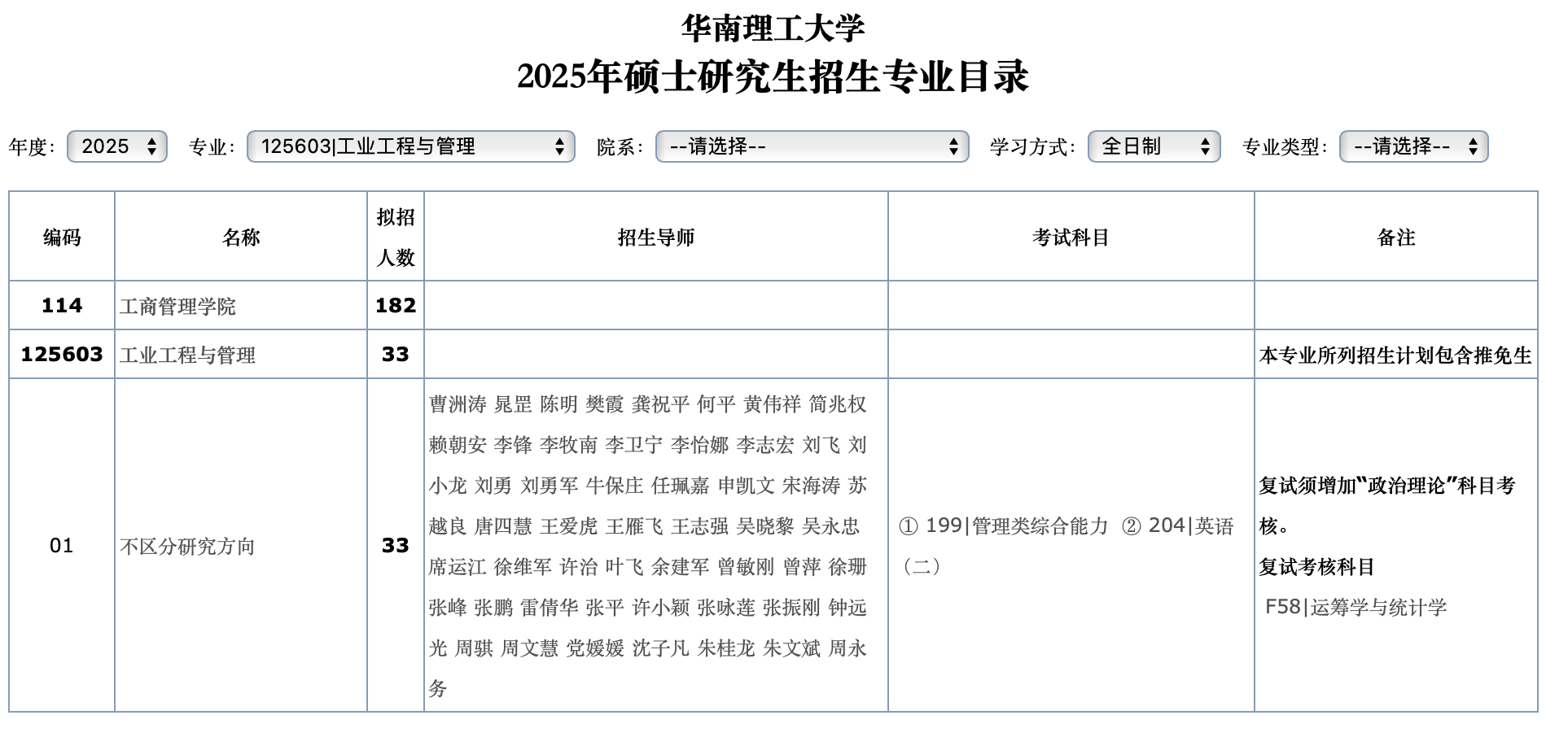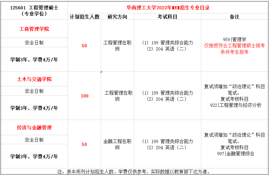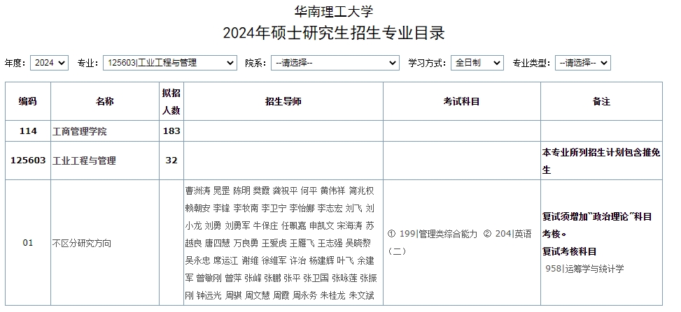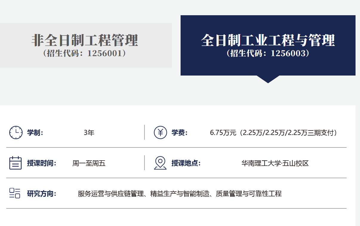 华南理工大学2025年全日制MEM工业工程与管理125603计划招生33人,学制3年,学费2.25万/年