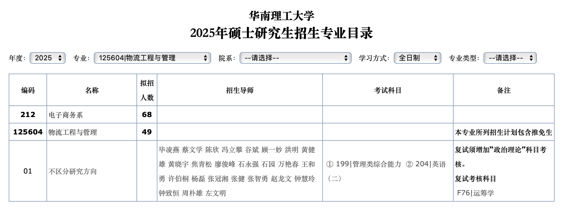 华南理工大学2025年全日制MEM物流工程与管理125604计划招生49人,学制3年,学费2.25万/年